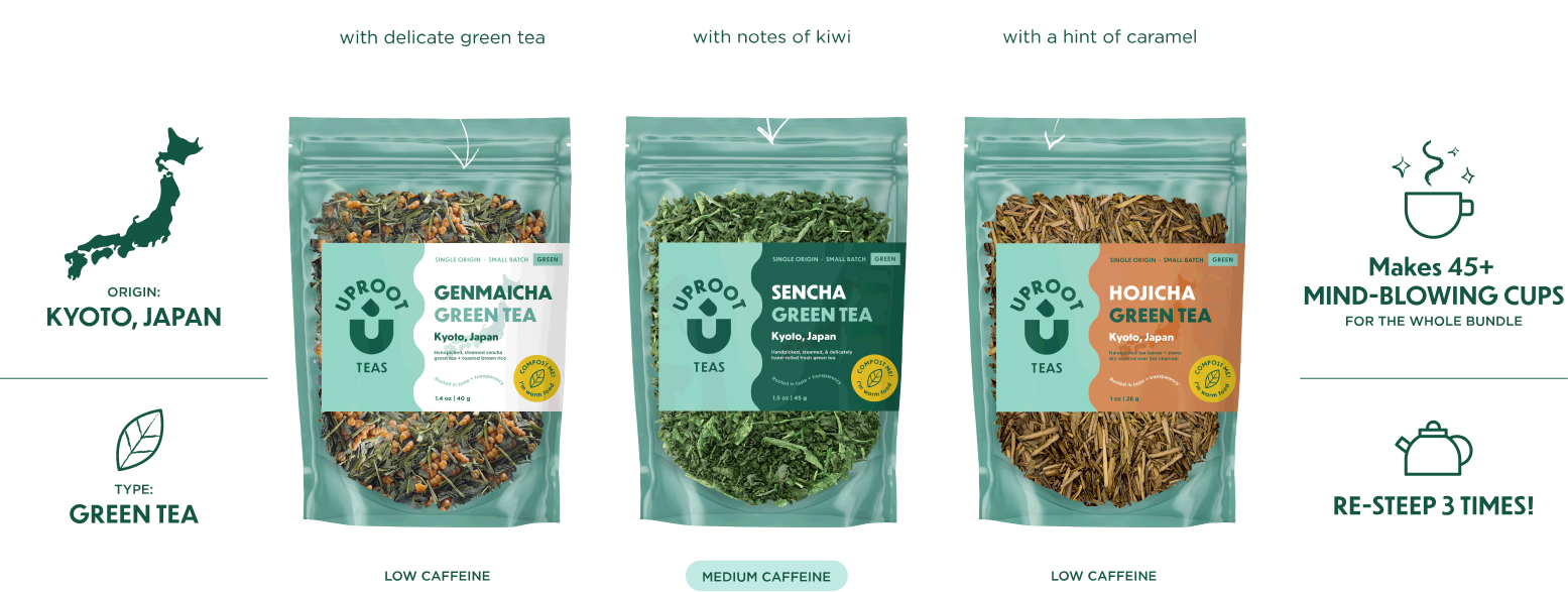 Single Origin Japanese Tea Trio | Sencha, Hojicha, Genmaicha